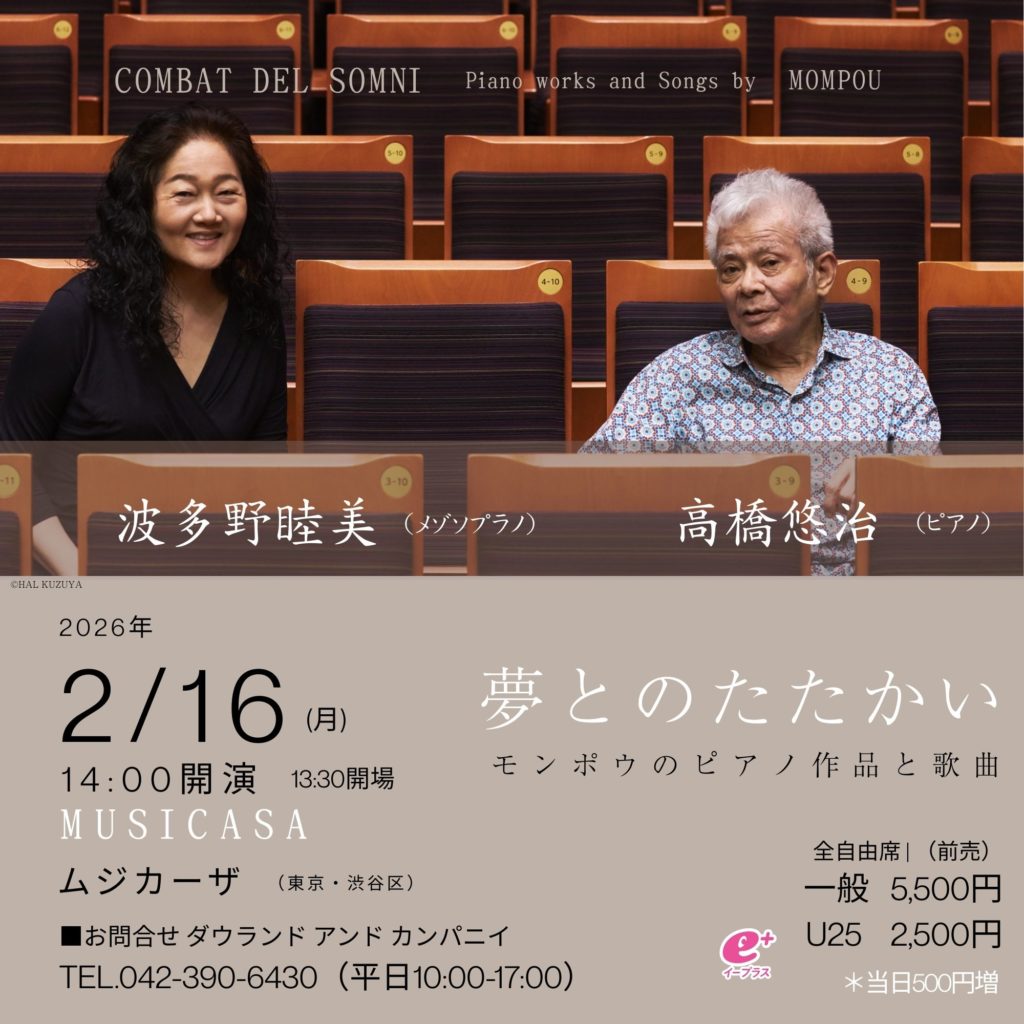 波多野睦美さんと高橋悠治さんの「モンポウのピアノ作品と歌曲」webチラシを作成させていただきました。